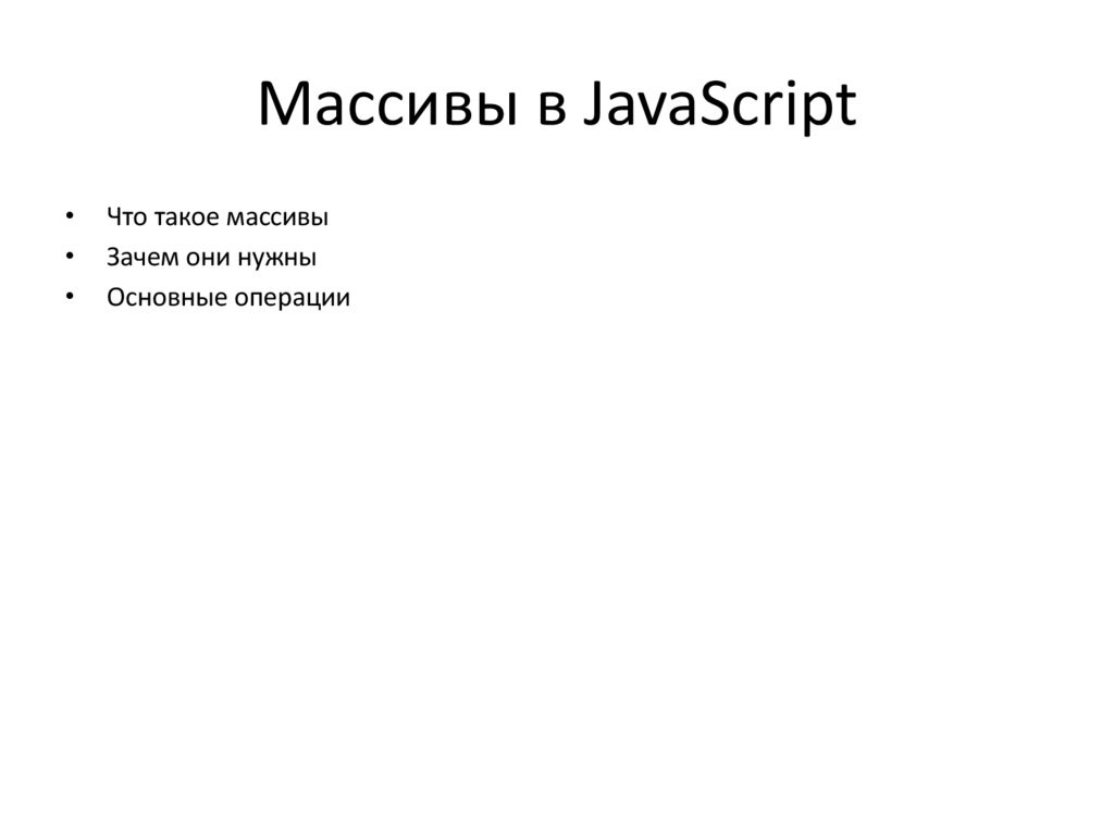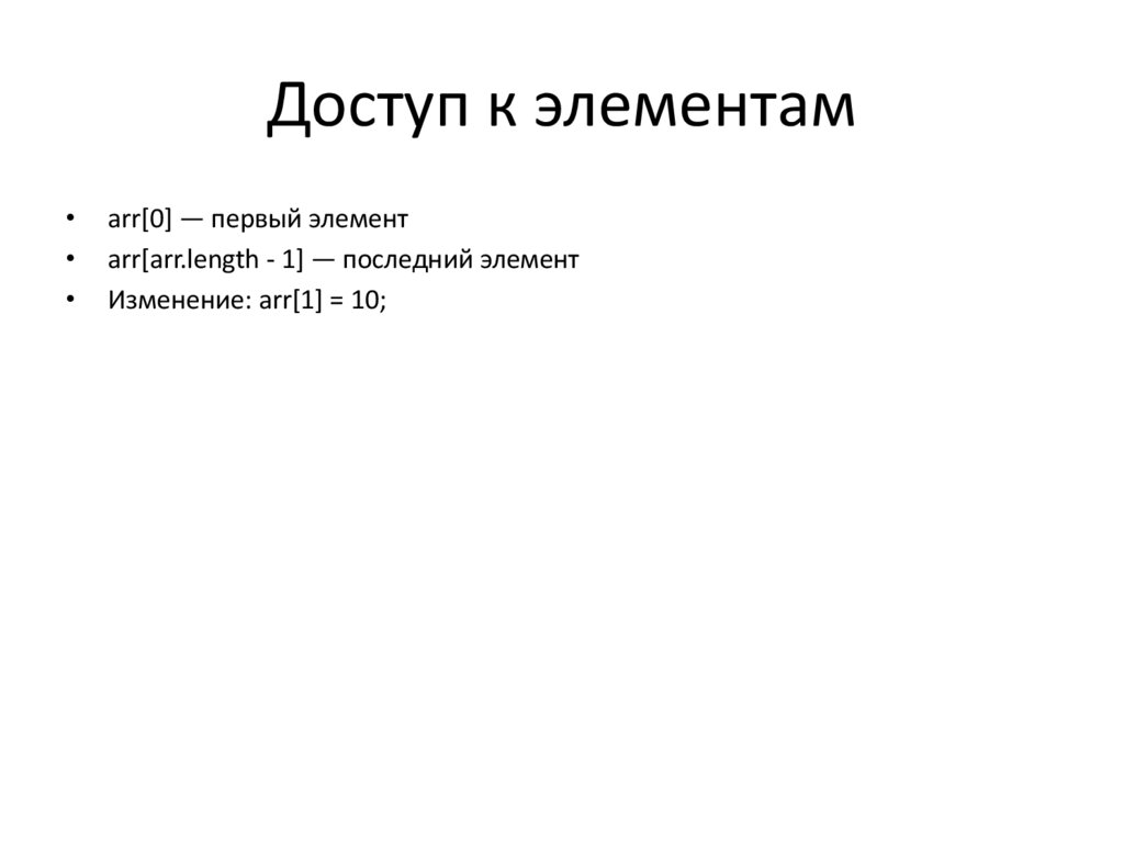 Перебор массиваfor (let i = 0; i < arr.length; i++) {}
