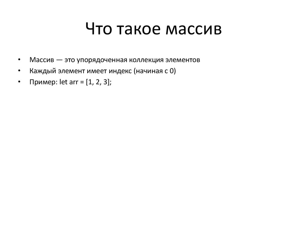 Что такое массивМассив — это упорядоченная коллекция элементов