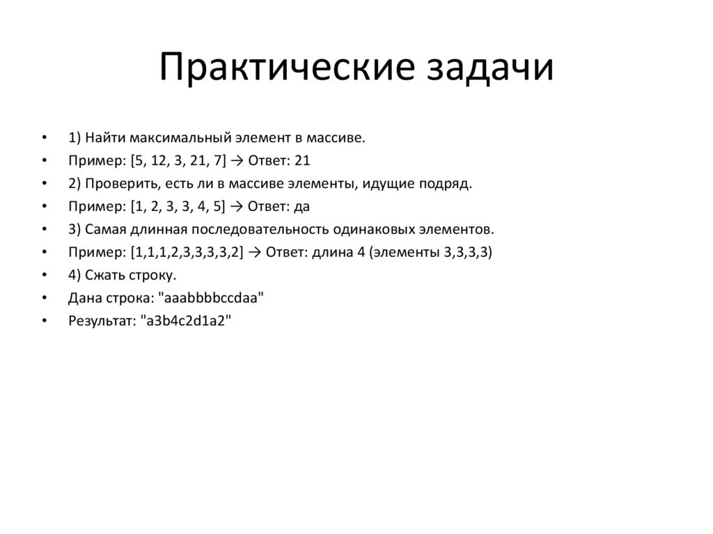 Пример: [1,1,1,2,3,3,3,3,2] → Ответ: длина 4 (элементы 3,3,3,3)