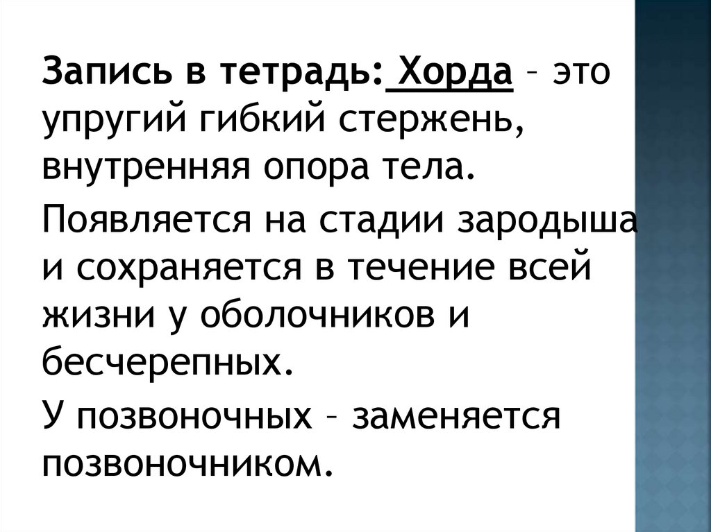 Запись в тетрадь: Хорда – этоупругий гибкий стержень,