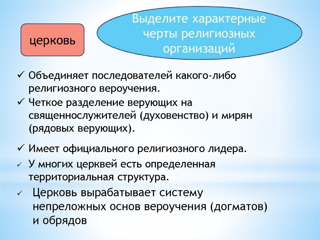 2) наличие культа, обрядов, религиозных традиций