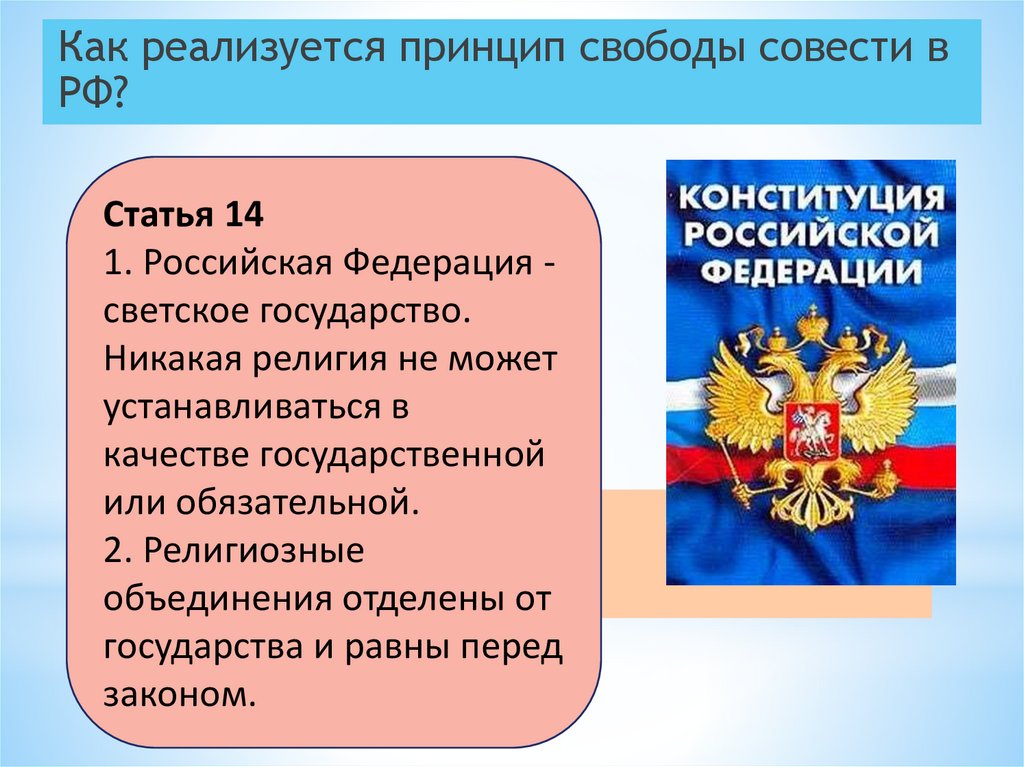 Как реализуется принцип свободы совести вРФ?