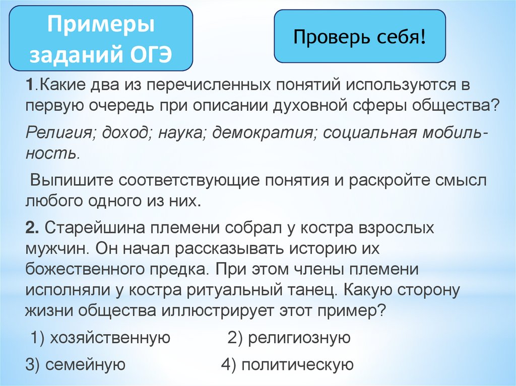 первую очередь при описании духовной сферы общества?