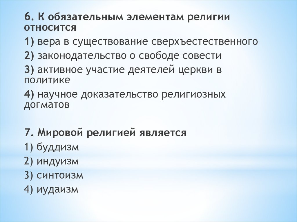 6. К обязательным элементам религииотносится