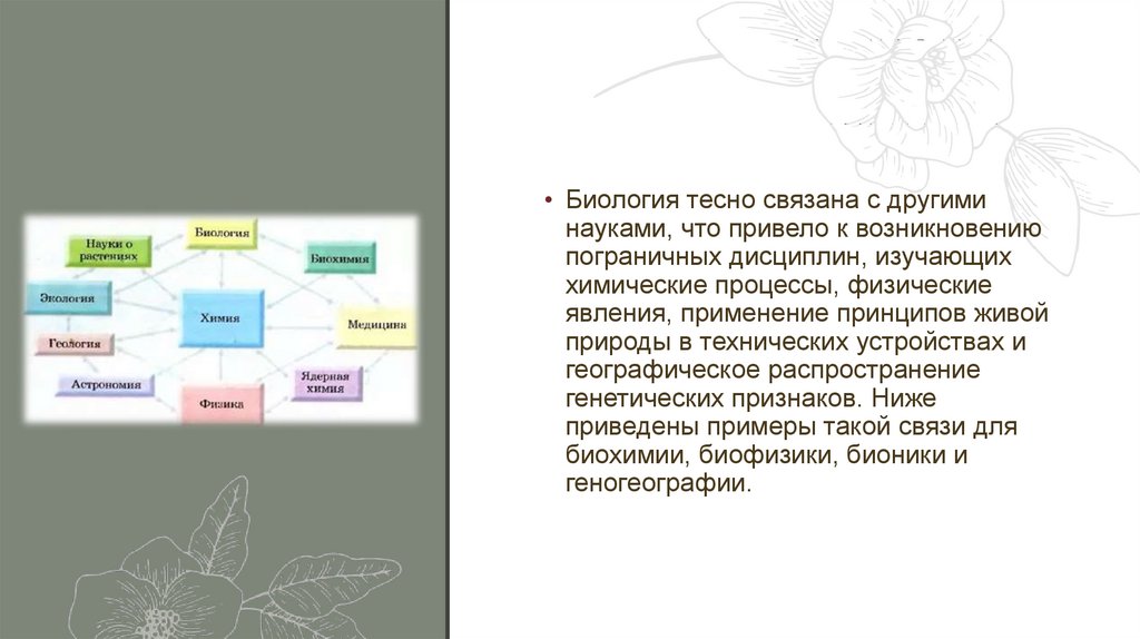 • Биология тесно связана с другиминауками, что привело к возникновению