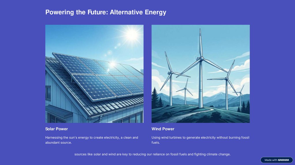 Renewable energy sources like solar and wind are key to reducing our reliance on fossil fuels and fighting climate change.
