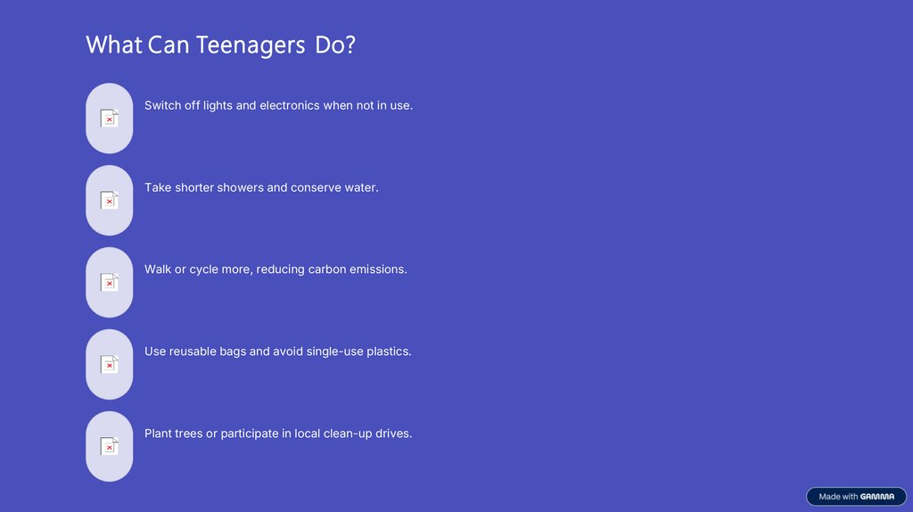 What Can Teenagers Do?Switch off lights and electronics when not in use.
