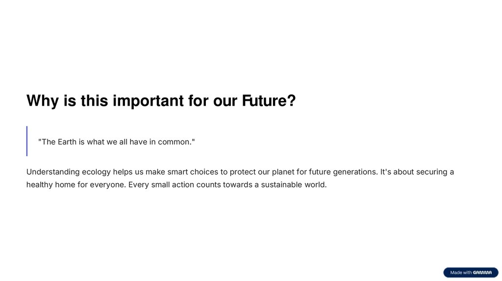 Understanding ecology helps us make smart choices to protect our planet for future generations. It's about securing a