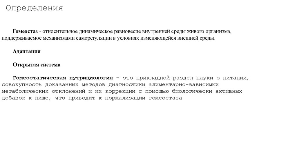 ОпределенияГомеостаз - относительное динамическое равновесие внутренней среды живого организма,