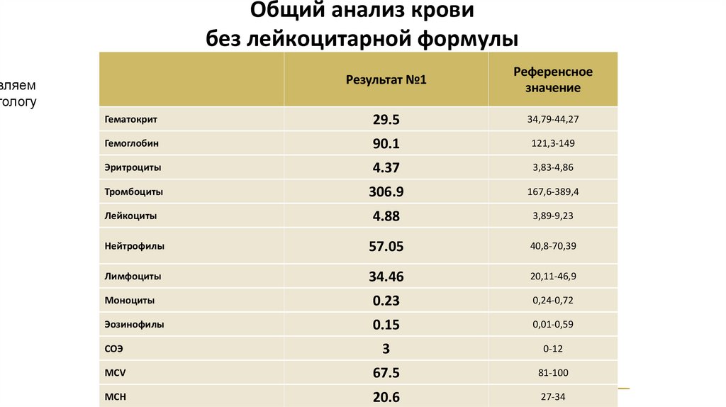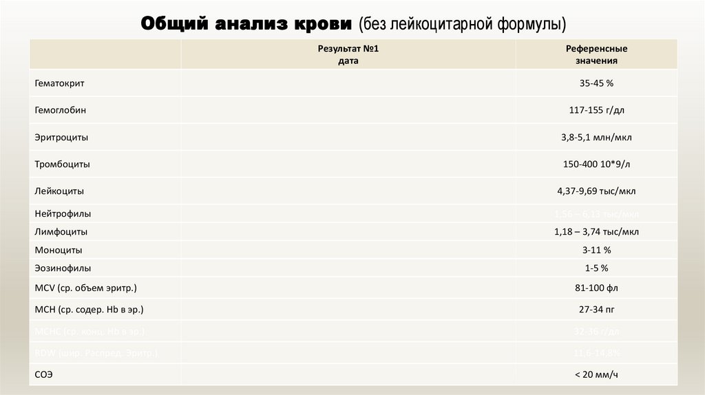 Общий анализ кровибез лейкоцитарной формулы