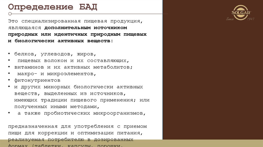 Определение БАДЭто специализированная пищевая продукция,