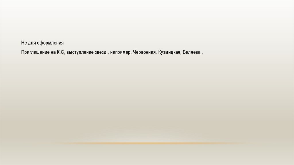 Не для оформленияПриглашение на К,С, выступление звезд , например, Червонная, Кузмицкая, Беляева ,