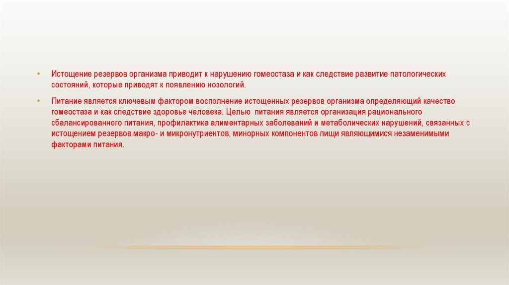 Истощение резервов организма приводит к нарушению гомеостаза и как следствие развитие патологических