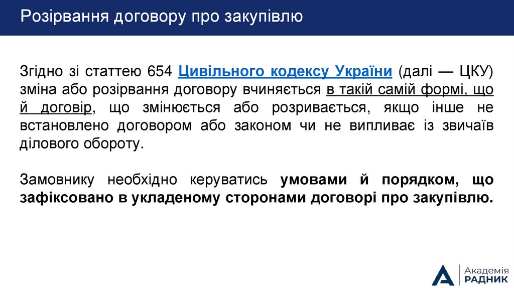 Розірвання договору про закупівлюЗгідно зі статтею 654 Цивільного кодексу України (далі — ЦКУ)