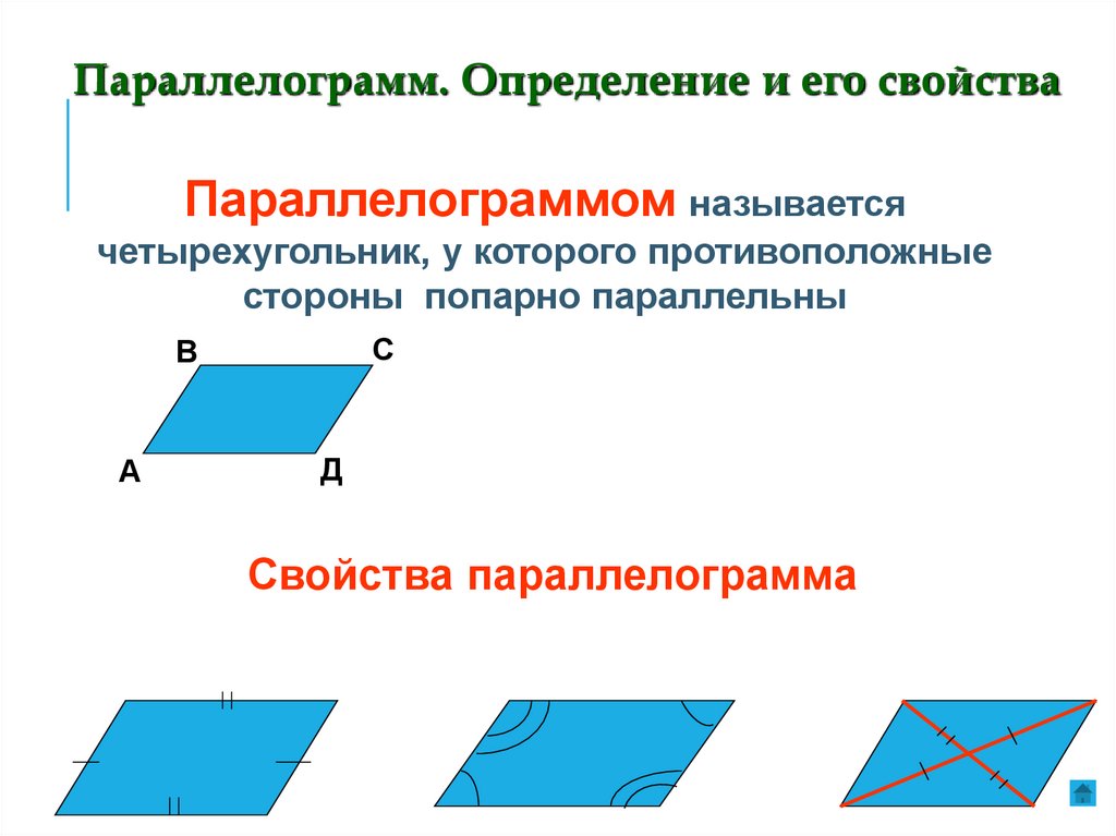 Параллелограмм. Определение и его свойстваПараллелограммом называется