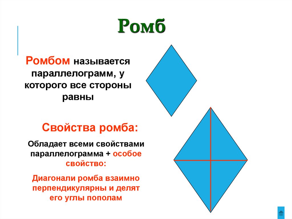 Свойства ромба: