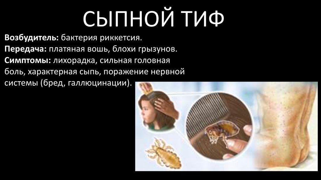 СЫПНОЙ ТИФВозбудитель: бактерия риккетсия.
