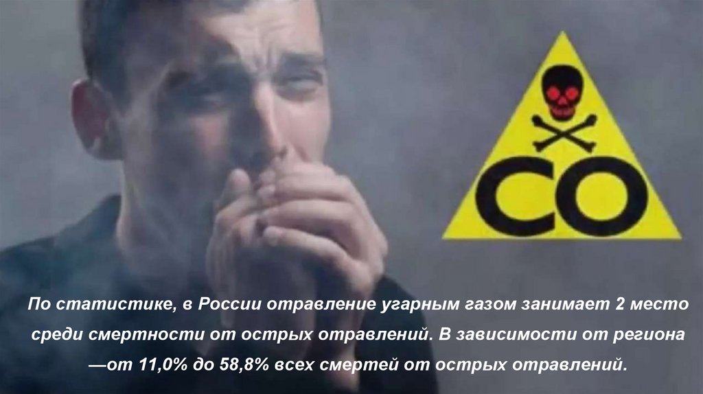 По статистике, в России отравление угарным газом занимает 2 местосреди смертности от острых отравлений. В зависимости от региона
