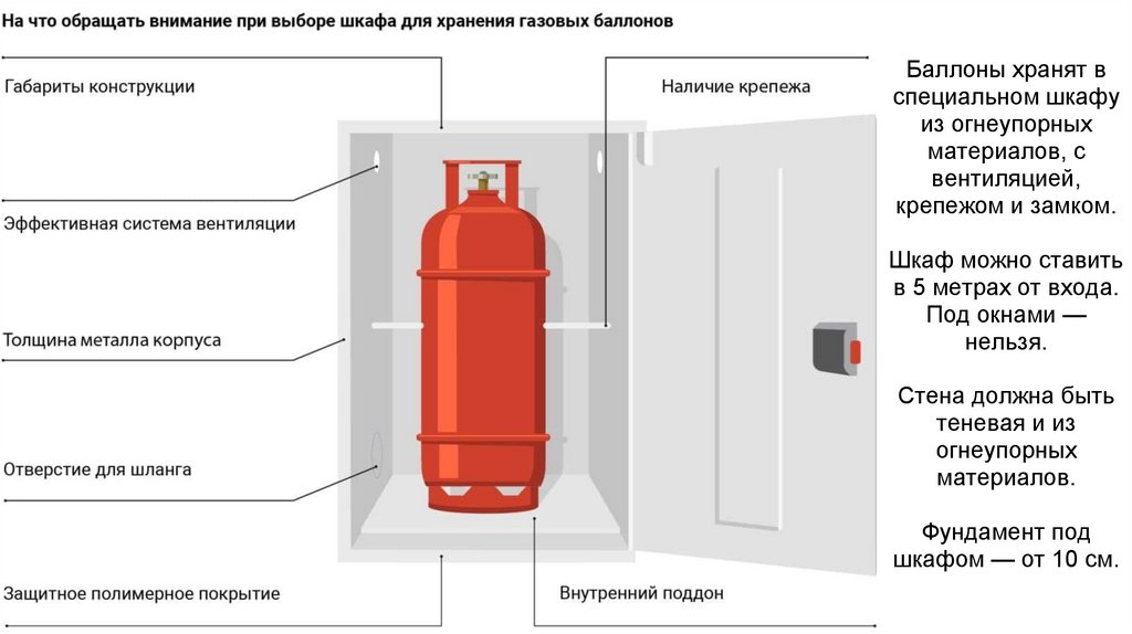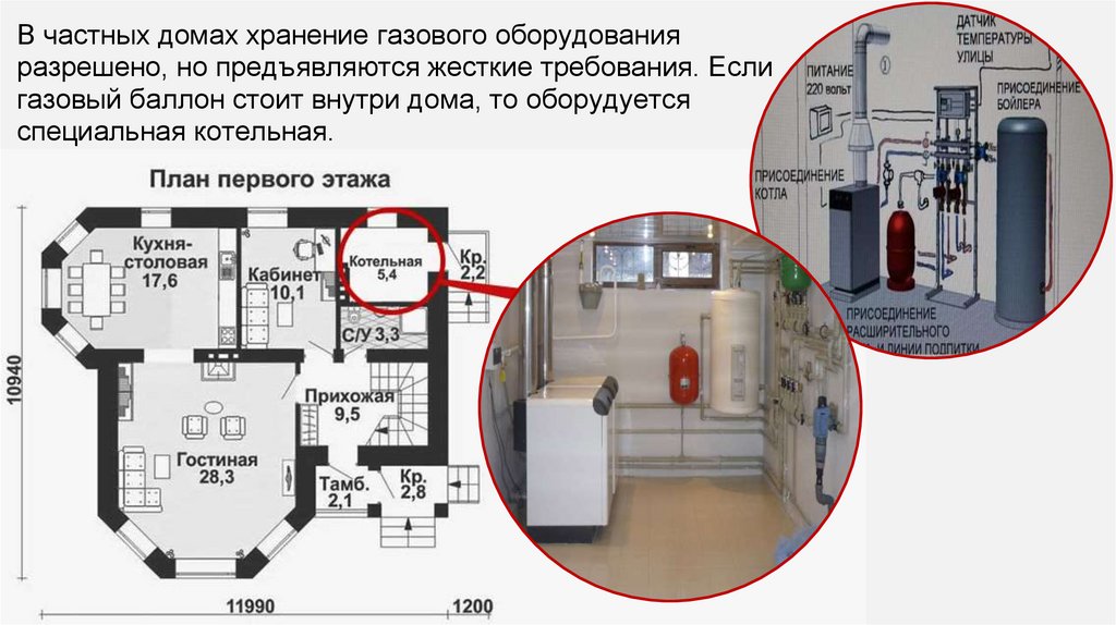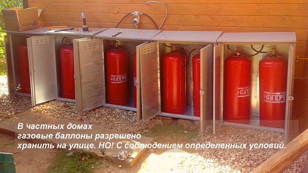 В частных домах хранение газового оборудованияразрешено, но предъявляются жесткие требования. Если