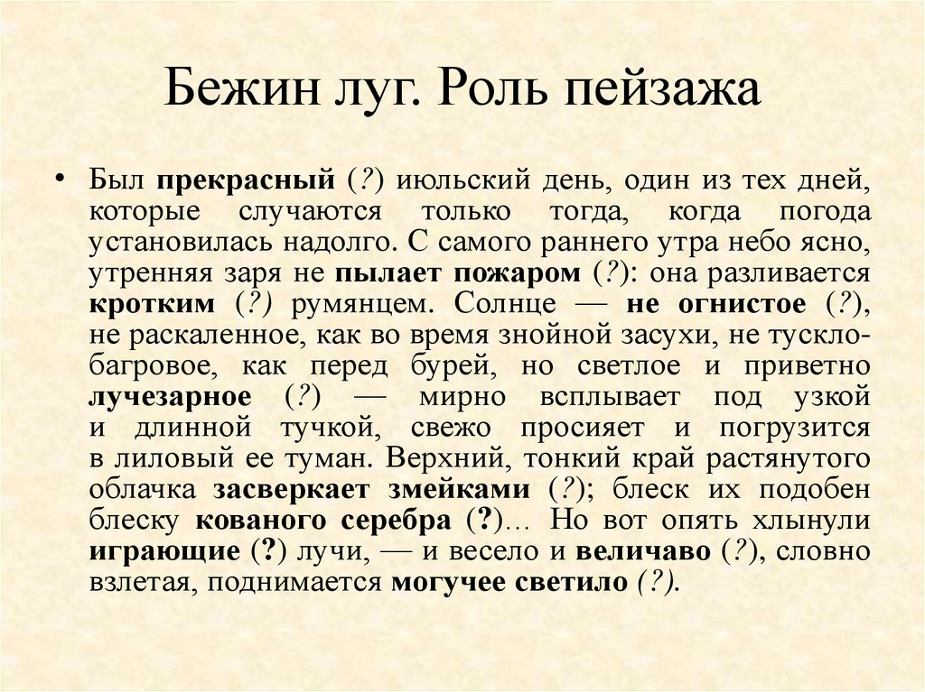 Бежин луг. Роль пейзажа• Был прекрасный (?) июльский день, один из тех дней,