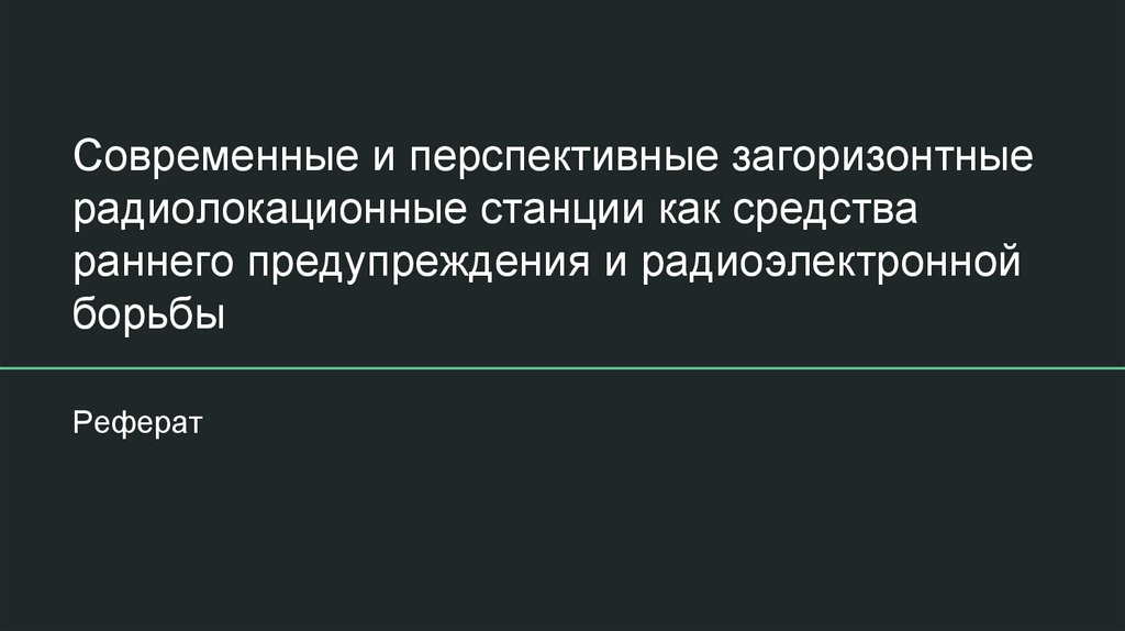 1. Современные и перспективные загоризонтные радиолокационные станции как средства раннего предупреждения и радиоэлектронной