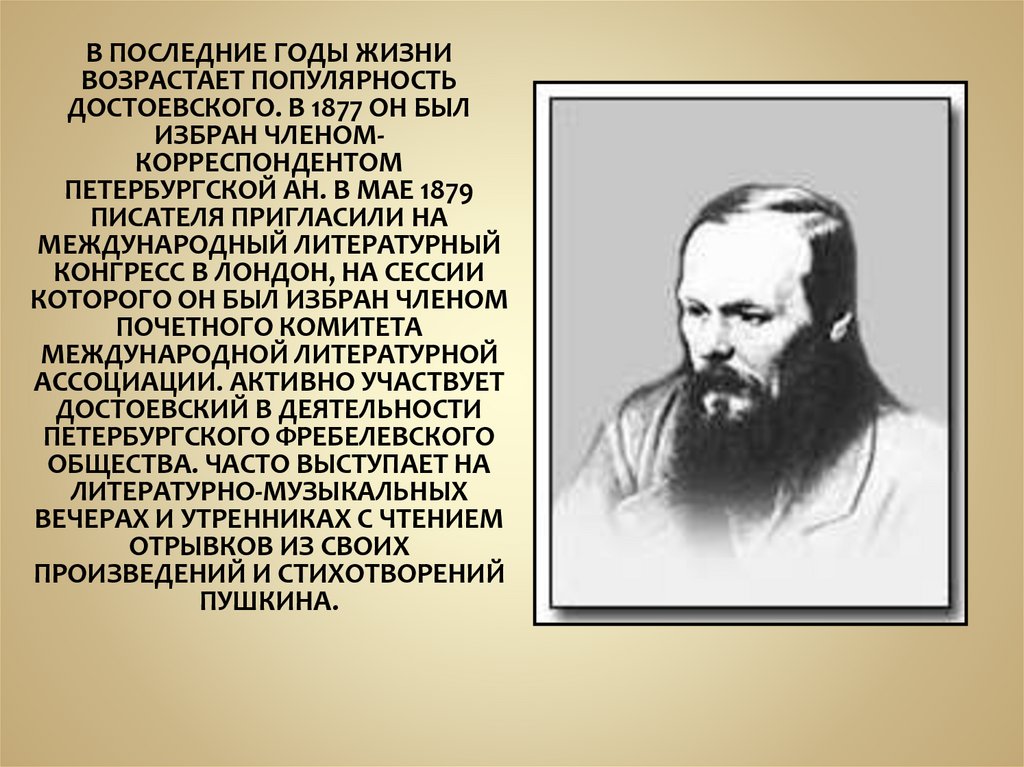 ДОСТОЕВСКОГО. В 1877 ОН БЫЛ
