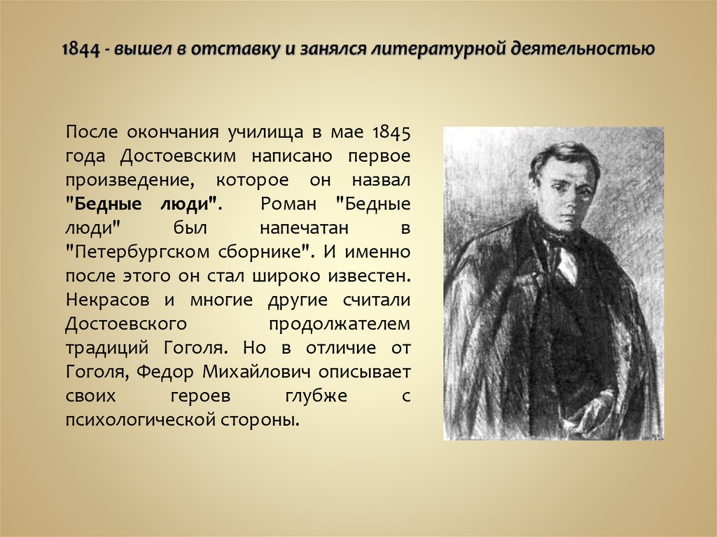 1845г – повесть «Бедные люди»1861г – «Записки из мёртвого дома»