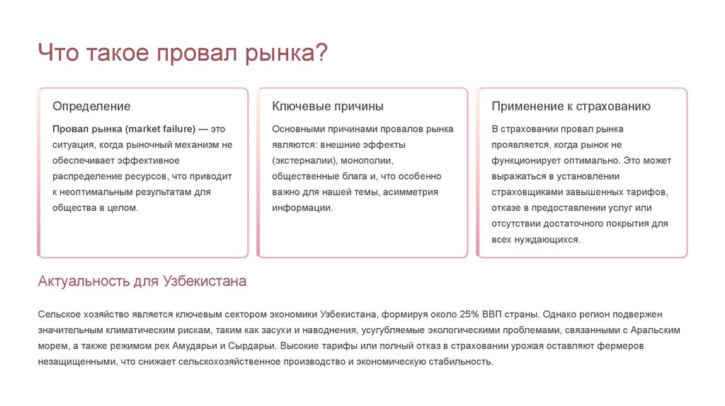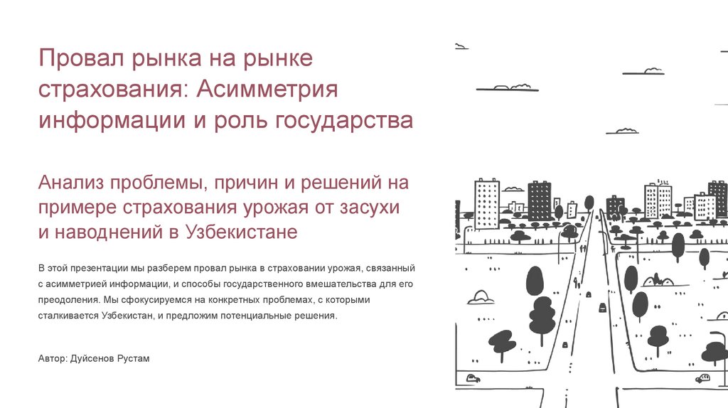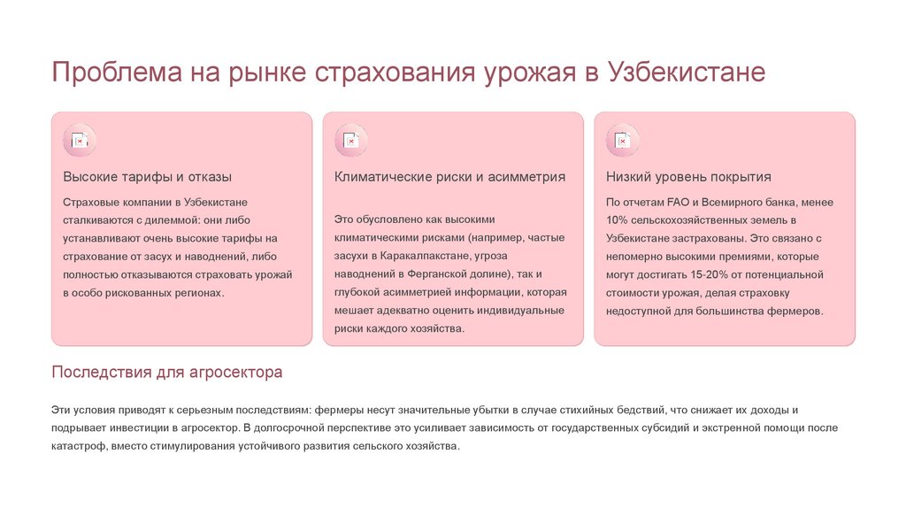 Заключение: Полное раскрытие темы и перспективыИтог: Провал рынка в страховании урожая в Узбекистане в значительной степени обусловлен неблагоприятным отбором, вызванным