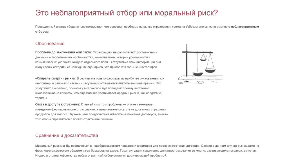 Это неблагоприятный отбор или моральный риск?Проведенный анализ убедительно показывает, что основная проблема на рынке страхования урожая в Узбекистане связана именно с неблагоприятным