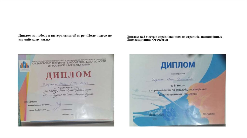 Диплом за победу в интерактивной игре «Поле чудес» поанглийскому языку