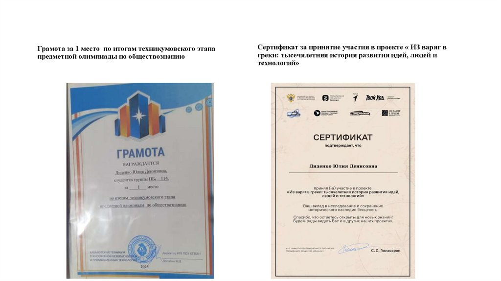 Сертификат за принятие участия в проекте « ИЗ варяг в