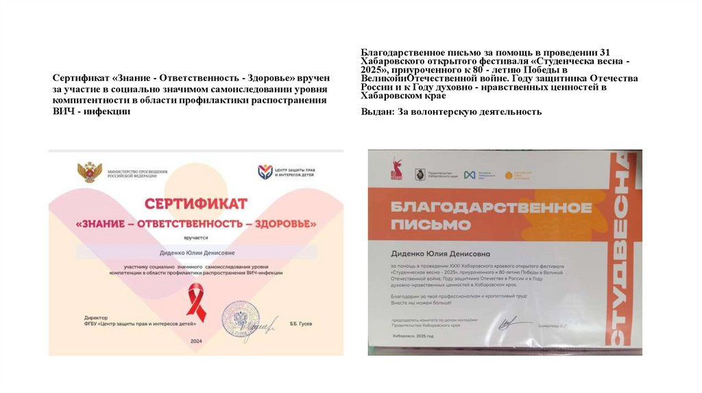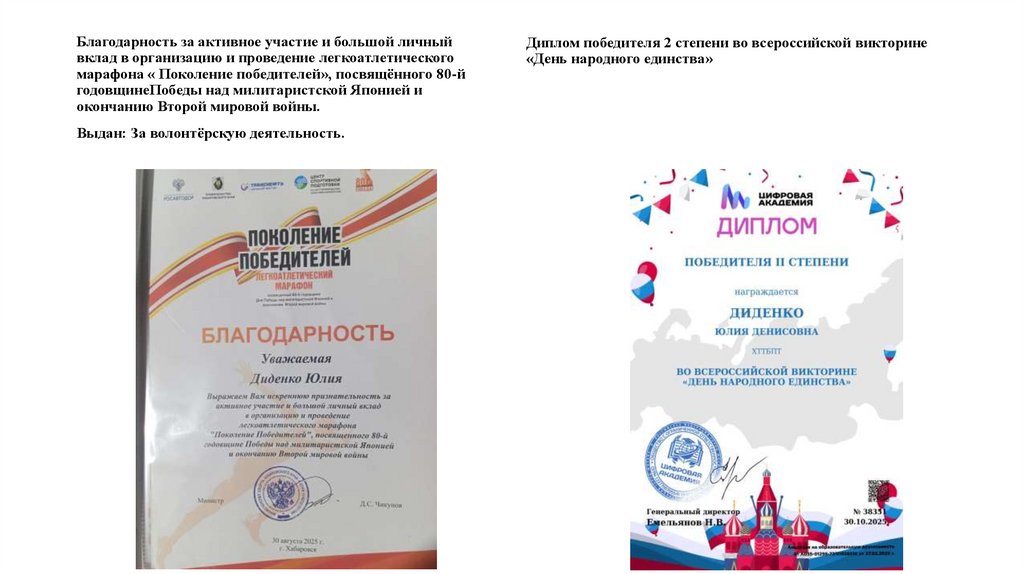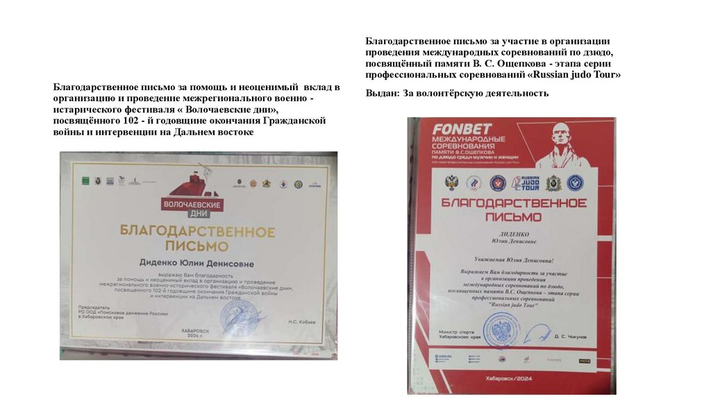 Выдан: За волонтерскую деятельность
