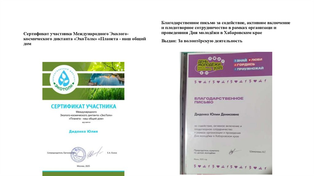 Сертификат участника Международного Экологокосмического диктанта «ЭкоТолк» «Планета - наш общийдом