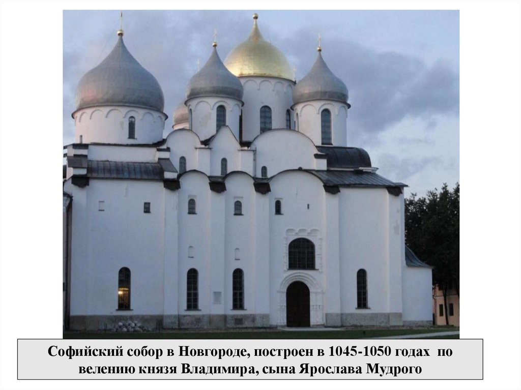 Софийский собор в Новгороде, построен в 1045-1050 годах повелению князя Владимира, сына Ярослава Мудрого