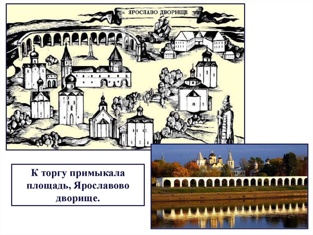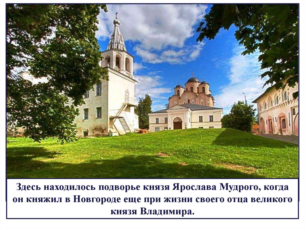 Здесь находилось подворье князя Ярослава Мудрого, когдаон княжил в Новгороде еще при жизни своего отца великого