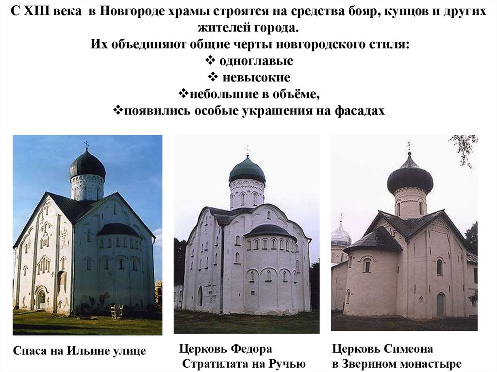 С XIII века в Новгороде храмы строятся на средства бояр, купцов и другихжителей города.