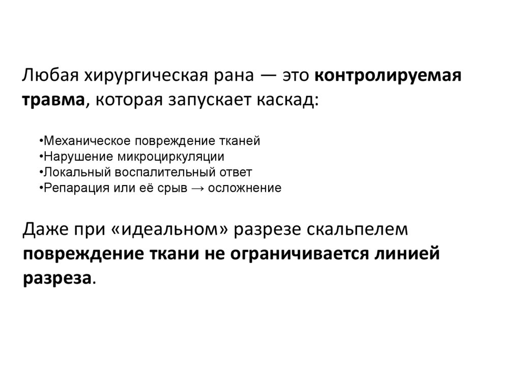 Любая хирургическая рана — это контролируемаятравма, которая запускает каскад: