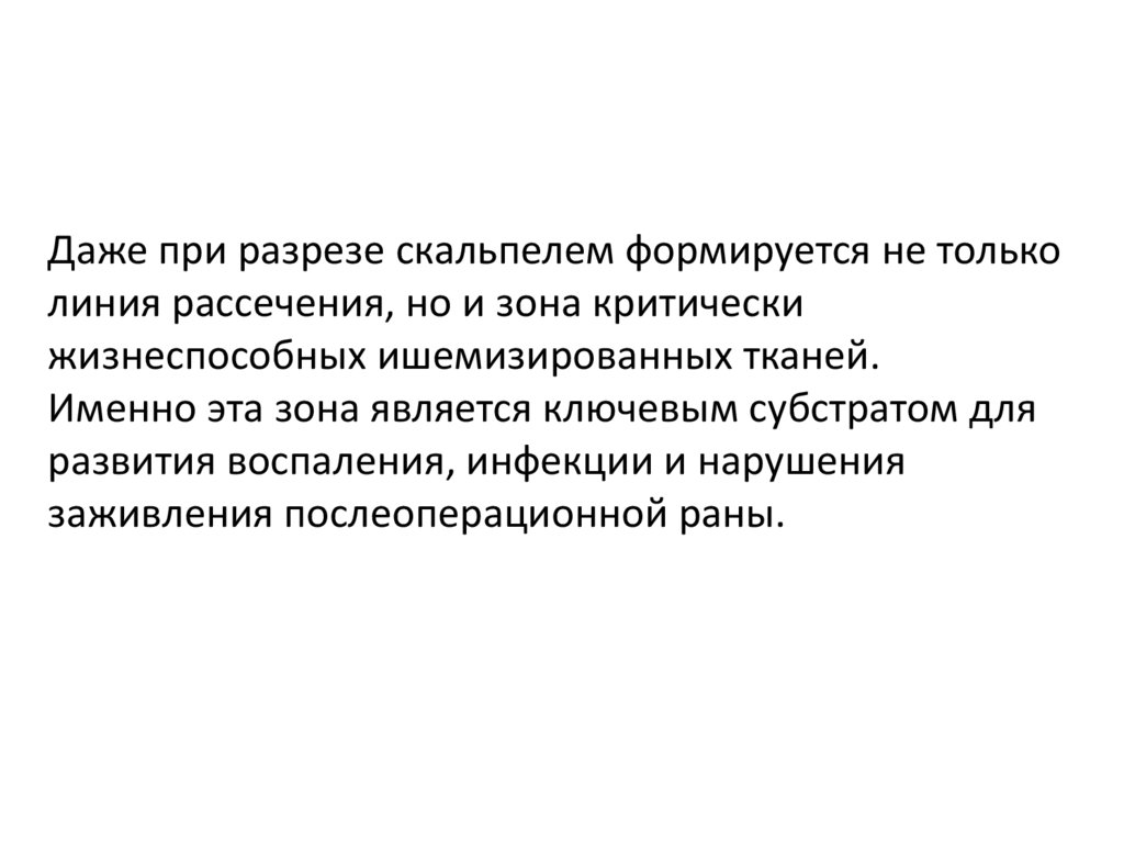 Даже при разрезе скальпелем формируется не тольколиния рассечения, но и зона критически