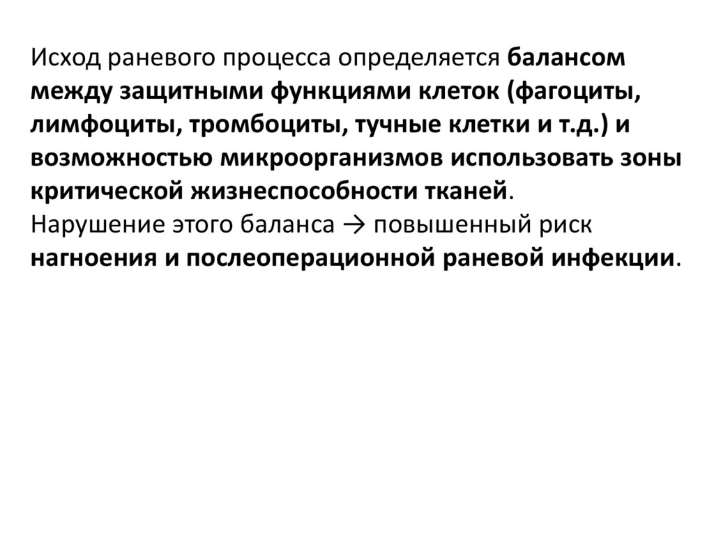 Исход раневого процесса определяется балансоммежду защитными функциями клеток (фагоциты,