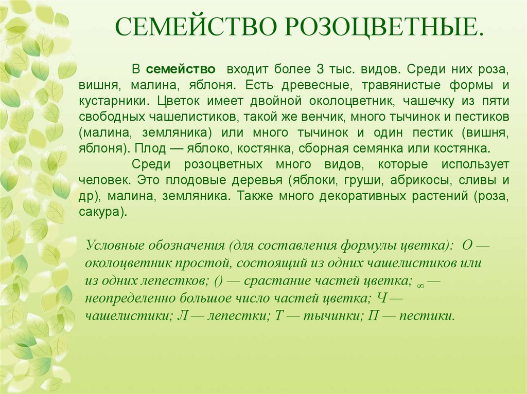 СЕМЕЙСТВО РОЗОЦВЕТНЫЕ.В семейство входит более 3 тыс. видов. Среди них роза,