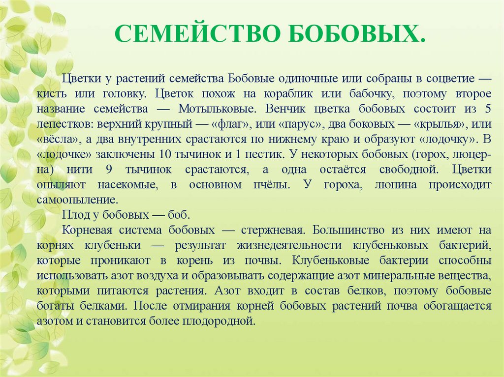 богаты белками. После отмирания корней бобовых растений почва обогащается