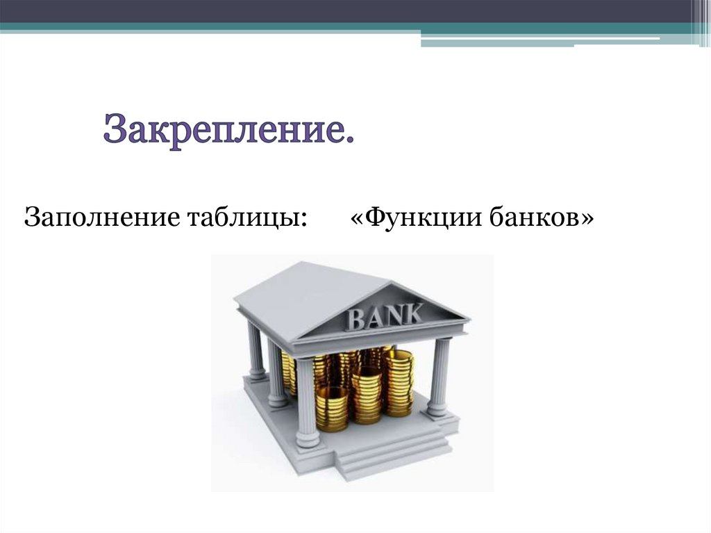 Заполнение таблицы:«Функции банков»
