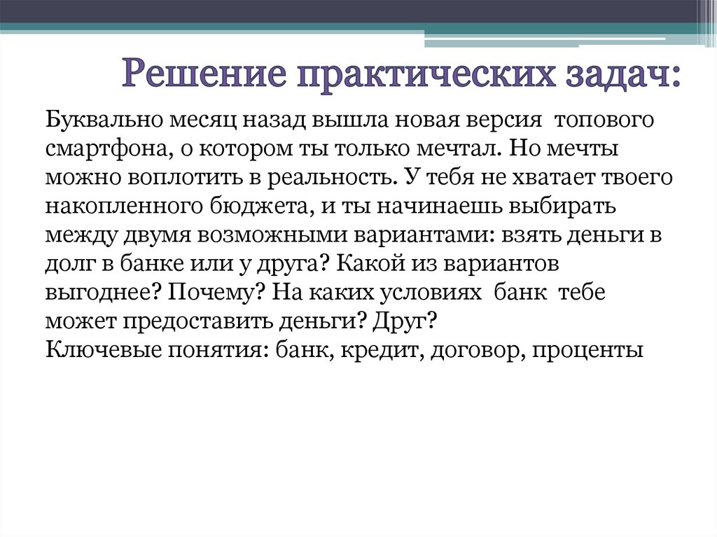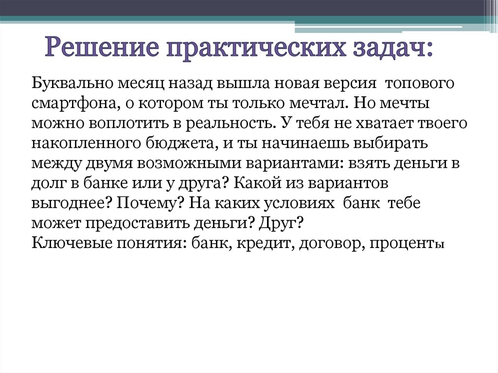 Ключевые понятия: банк, кредит, договор, проценты