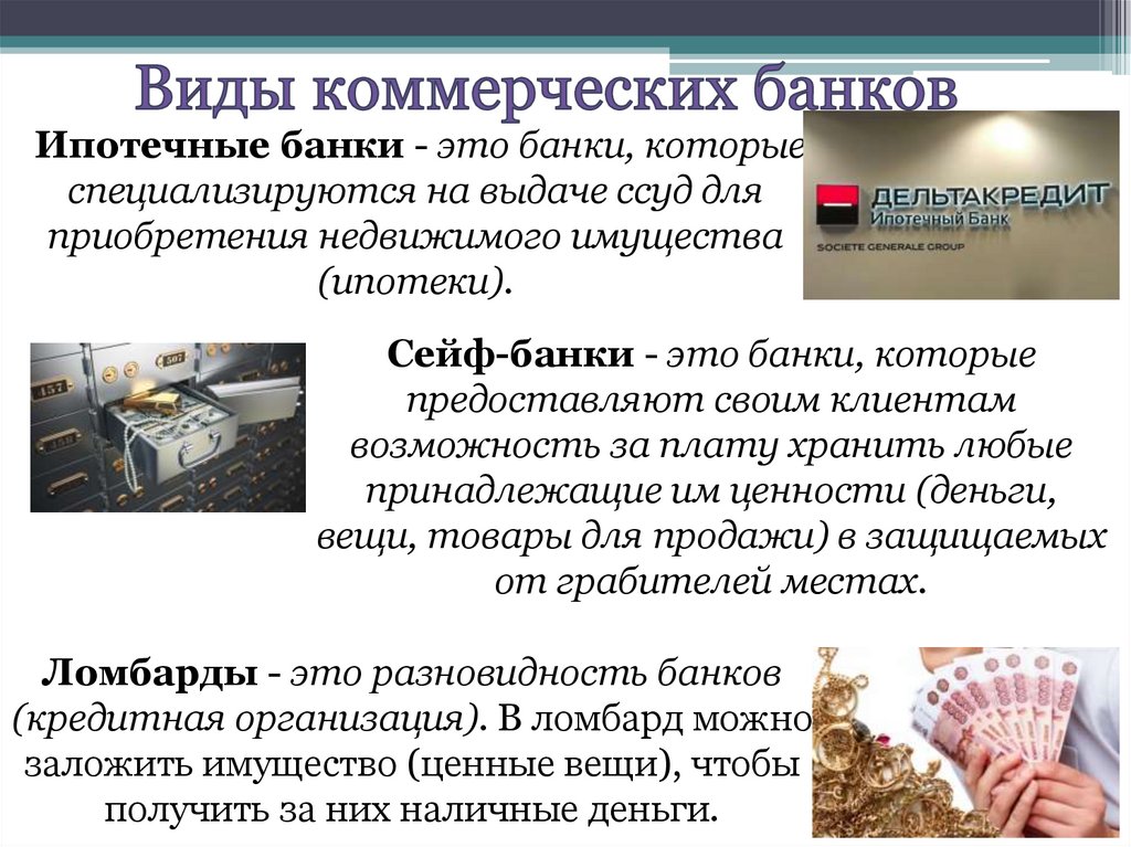 Ипотечные банки - это банки, которыеспециализируются на выдаче ссуд для