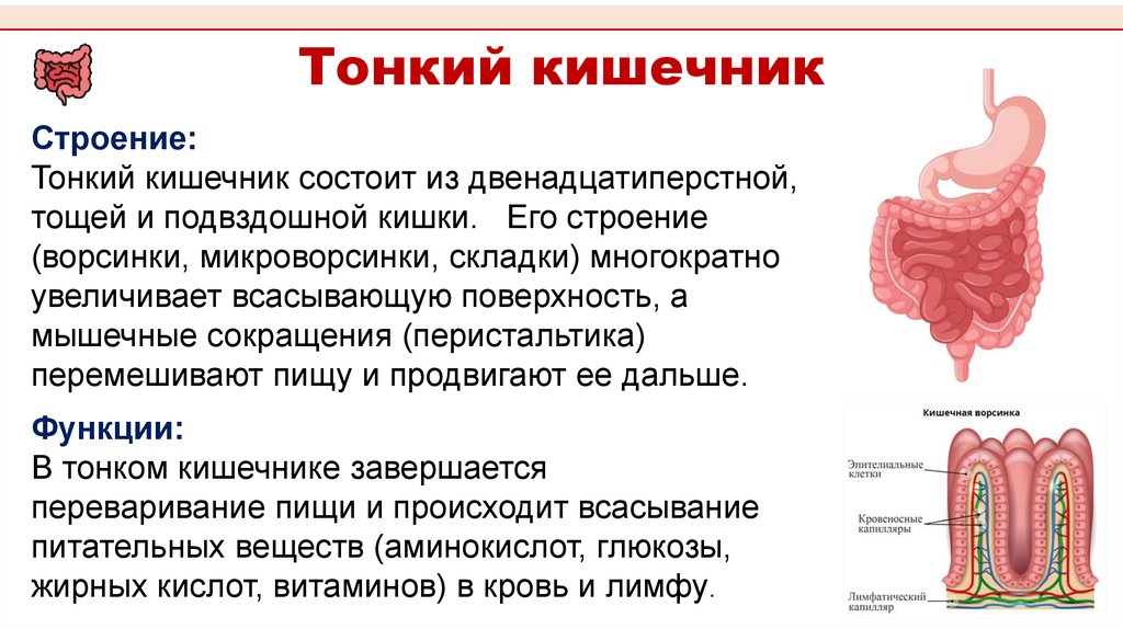 Тонкий кишечник состоит из двенадцатиперстной, тощей