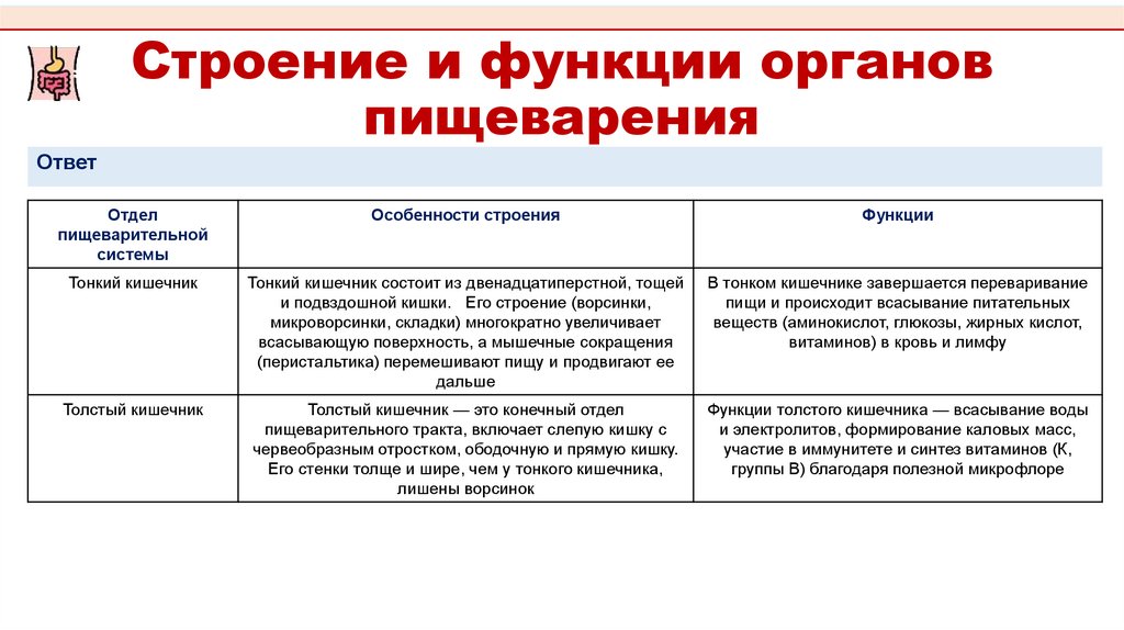 Задание: предположите, какие органы пищеварительной системы будут выполнять указанные