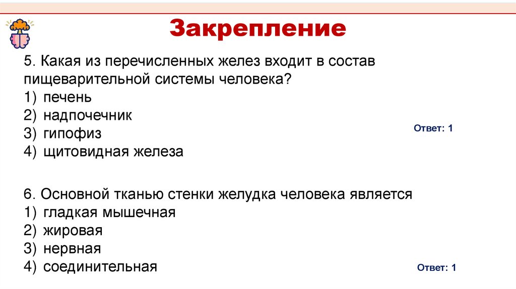 Закрепление1. Какой орган относят к пищеварительному каналу?