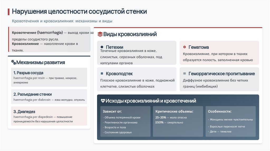 Нарушения целостности сосудистой стенкиКровотечения и кровоизлияния: механизмы и виды