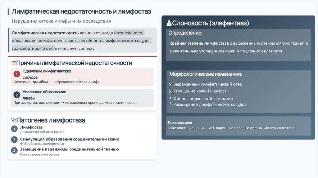 Лимфатическая недостаточность и лимфостазНарушения оттока лимфы и их последствия