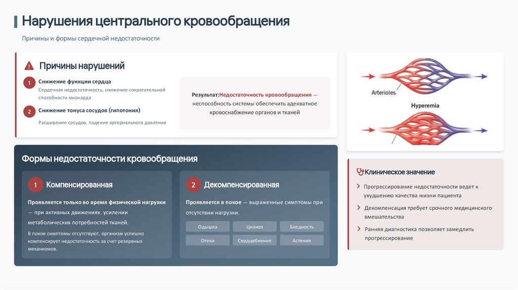 Нарушения центрального кровообращенияПричины и формы сердечной недостаточности